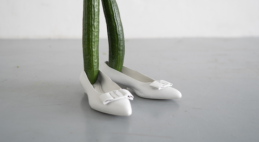 他在北美館舉行的個展中,同樣運用各種素材打造「台北風景」,更跨界使用了多款時尚單品帶來衝突感十足的戲劇效果。其中他將小黃瓜組合Ferragamo春夏話題新鞋款「Viva」,打造彷彿「三七步」般態度十足的站姿;而秀上飄逸吸睛的連身裙則是被「穿」在掃把與拖把上,不僅巧妙結合時尚與藝術,有趣的畫面更是幽默感十足。