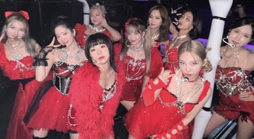 站在左後方的周子瑜,盡力搞笑但身上性感服裝又被粉絲讚爆。