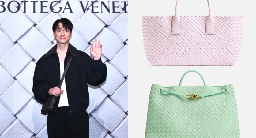 Bottega Veneta新任品牌大使劉俊謙搭配編織小包現身,呼應活動主題。DIAGO編織皮革肩背包,99,800元。(記者陳奕全攝)