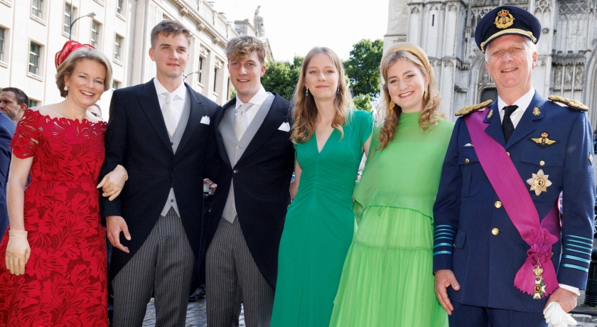 近日國王和瑪蒂爾德王后(Reine Mathilde)接連舉辦了國慶日活動,包括公園派對和國慶晚會,4名子女難得一起陪爸媽全到齊!在公園派對上23歲的伊莉莎白公主以一身寶藍色洋裝優雅現身,21歲的加布里埃爾王子(Prince Gabriel)、19歲的艾曼紐王子(Prince Emmanuel )身穿西裝帥氣登場,17歲的艾蕾奧諾公主(Princesse Eléonore)則以一身DVF印花編織洋裝帶來滿滿夏日風情。