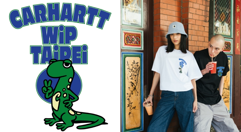 為慶祝開幕,Carhartt以台灣特有種「台灣山椒魚(Taiwan Salamander)」為主角,設計兩款台北限定T-Shirt,結合藍綠色調呼應海島特色,兼具趣味與收藏價值。凡購買限量T-Shirt,即可獲得限定貼紙一組,數量有限、贈完為止。