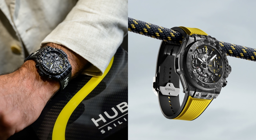 外觀上,全新Big Bang Unico航海勇者限量錶採用42毫米黑色碳纖維錶殼,厚度14.5毫米,重量輕卻堅固耐用,防水深度達100米。錶盤以啞黑色為基調,9點鐘位置印有瑞士國旗與「SUI 7」字樣,向Roura的航海身份致敬。錶帶設計靈感取自船帆織布,以魔鬼氈固定,並印有「Hublot」字樣,另附黑黃雙色橡膠錶帶,色彩呼應帆船塗裝。錶扣則以黑陶瓷與鍍黑鈦金屬製成,展現運動與耐用兼備的特質。