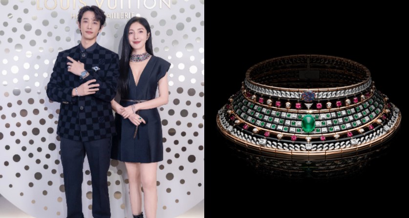 受邀搶先鑑賞全新Virtuosity頂級珠寶系列的楊謹華與劉以豪,兩人分別佩戴《Monumental紀念》頸鍊與《Keeper守密》胸針,楊謹華特別欣賞頸鍊上交織的貴寶石,與一身黑色短洋裝完美相襯。劉以豪則是對胸針讚不絕口,尤其是垂墜的3.17克拉橢圓形珍珠與中央12.44克拉藍寶石,在不同角度都能欣賞光澤變幻。Louis Vuitton頂級珠寶展「匠藝之境Virtuosity」即日起至10月12日於台中由鉅惟上展出,採VIP預約制鑑賞。