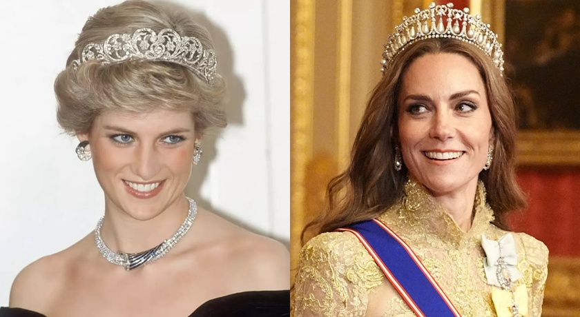 黛安娜王妃(左)和凱特王妃(右)的王冠造型都優雅。(翻攝自IG、路透)