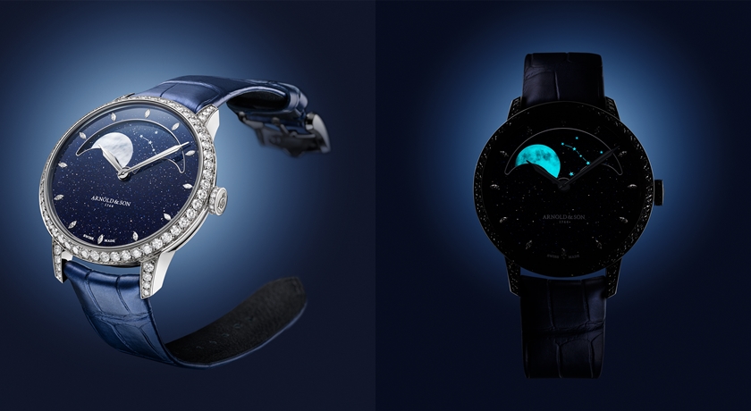 Arnold & Son Perpetual Moon 38白金月相腕錶的夜光顯示。(Sincere Fine Watches提供)