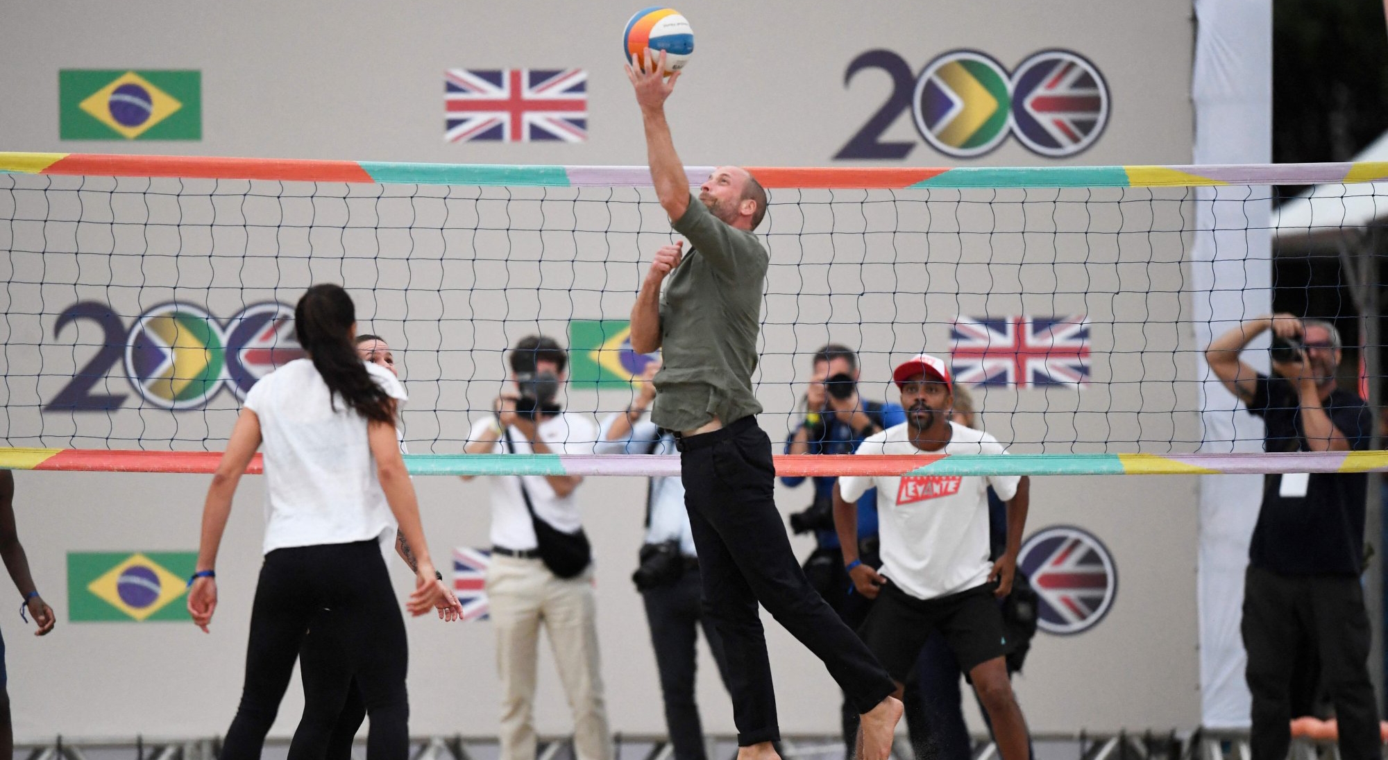當天,威廉王子脫下鞋襪、赤腳上場,甚至摘下手錶化身「沙灘排球隊」成員,與巴西奧運選手卡羅琳娜索貝格(Carolina Solberg)一同陪伴孩子們打沙灘排球。威廉王子相當投入,面對飛來的排球,全神貫注,還為救球前撲,在場上開懷大笑。索貝格賽後也大讚威廉王子:「他很高、力量也夠,如果多練幾次一定會變高手!跟他同場比賽真的很榮幸。」現場氣氛輕鬆愉快。
