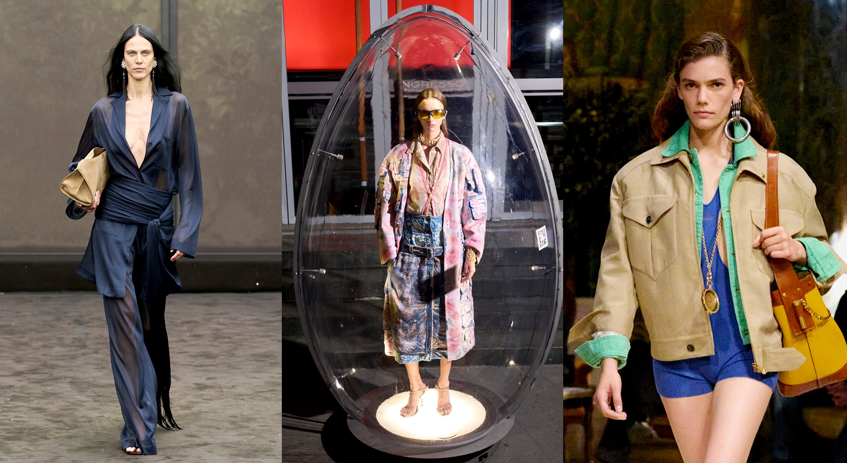 迎來新任創意總監Louise Trotter的BOTTEGA VENETA,以細節壓褶與不規則肩帶設計鬆動傳統結構,再從斜率與線條中尋求完美平衡,重新探索肢體與結構關係;PRADA則藉由飄浮感立體剪裁與解構輪廓,模糊正式與非正式語彙,在襯衫與洋裝之間找出新形式,體現雙強創意總監Miuccia Prada與Raf Simons強調的打破框架核心精神。