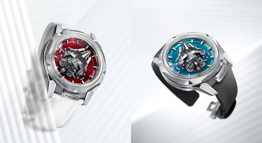 FREAK S ENAMEL奇想S琺瑯腕錶,以鮮明的霓光藍、濃絳紅為前衛錶款帶來全新視覺。(Ulysse Nardin提供)