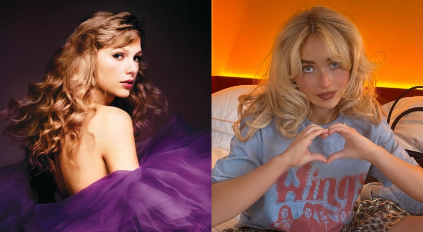 莎賓娜卡本特(右)因2023年擔任泰勒絲(左)北美巡迴演唱會嘉賓爆紅,兩人後來也近一步建立好交情。