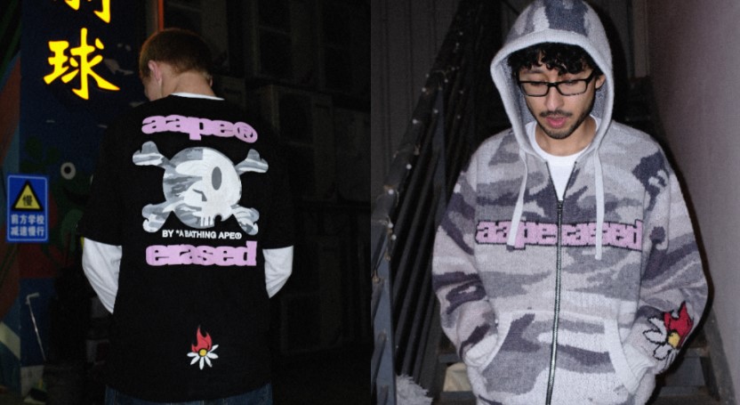 以猿人頭作為經典標誌的日本潮流品牌A BATHING APE®(簡稱BAPE)旗下年輕副線AAPE BY *A BATHING APE®(簡稱AAPE),今年秋冬首度攜手美國洛杉磯滑板品牌ERASED展開聯名合作,結合雙方對街頭文化的美學詮釋,打造充滿90年代滑板文化風格的潮流單品。聯名系列承襲ERASED創辦人Luis Mora強調的「抹去舊時自我,重新開始」理念,以重塑自我為核心,鼓勵大眾學習滑板文化的自由精神,無懼蛻變,並透過迷彩、骷髏等潮流元素展現個人風格語彙。