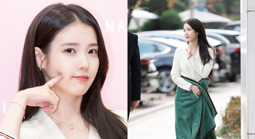 為了禦寒,IU「上班路」先圍著毛毯保暖。