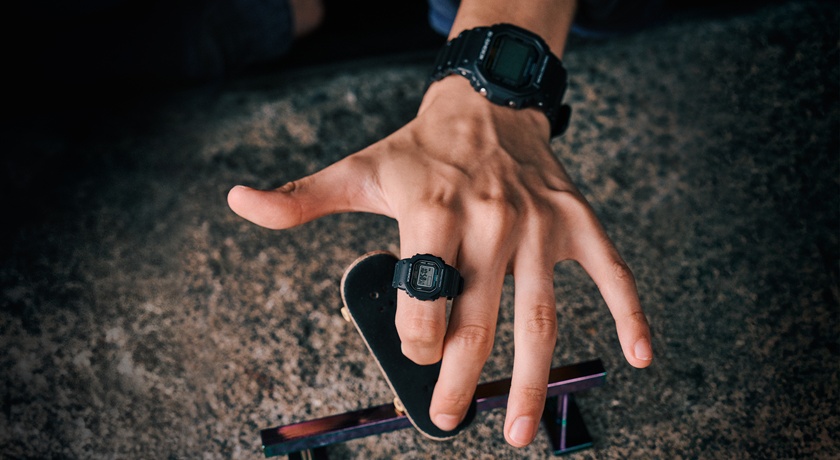 此外,戒指錶DWN-5600也延續了G-SHOCK引以為傲的耐衝擊性能,採用玻璃纖維強化樹脂錶殼和聚氨酯錶圈結構,確保緊閉密封效果、防震耐撞與防水200 米的卓越性能,同時也支援更換電池功能,其他包括6位數LCD螢幕可顯示時間、日期、第二時區與秒錶等實用功能皆與原版腕錶一致,側邊三枚按鈕不僅具裝飾效果,更能操作模式切換與照明功能。