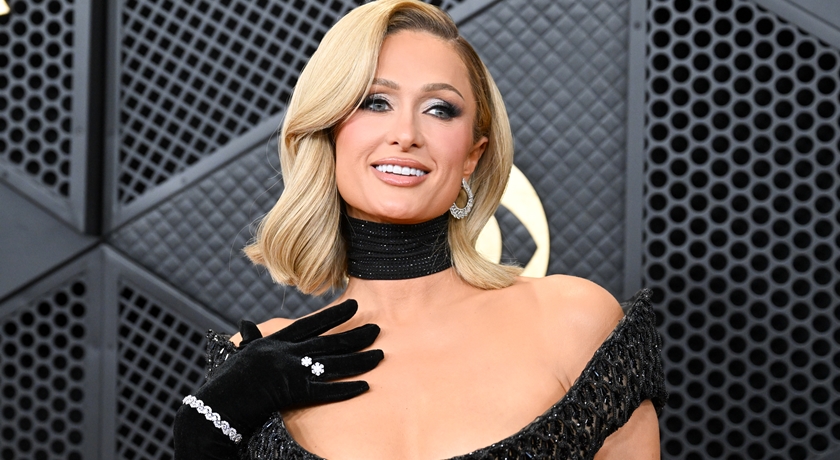 派瑞絲希爾頓以優雅造型現身葛萊美獎紅毯。(美聯社)