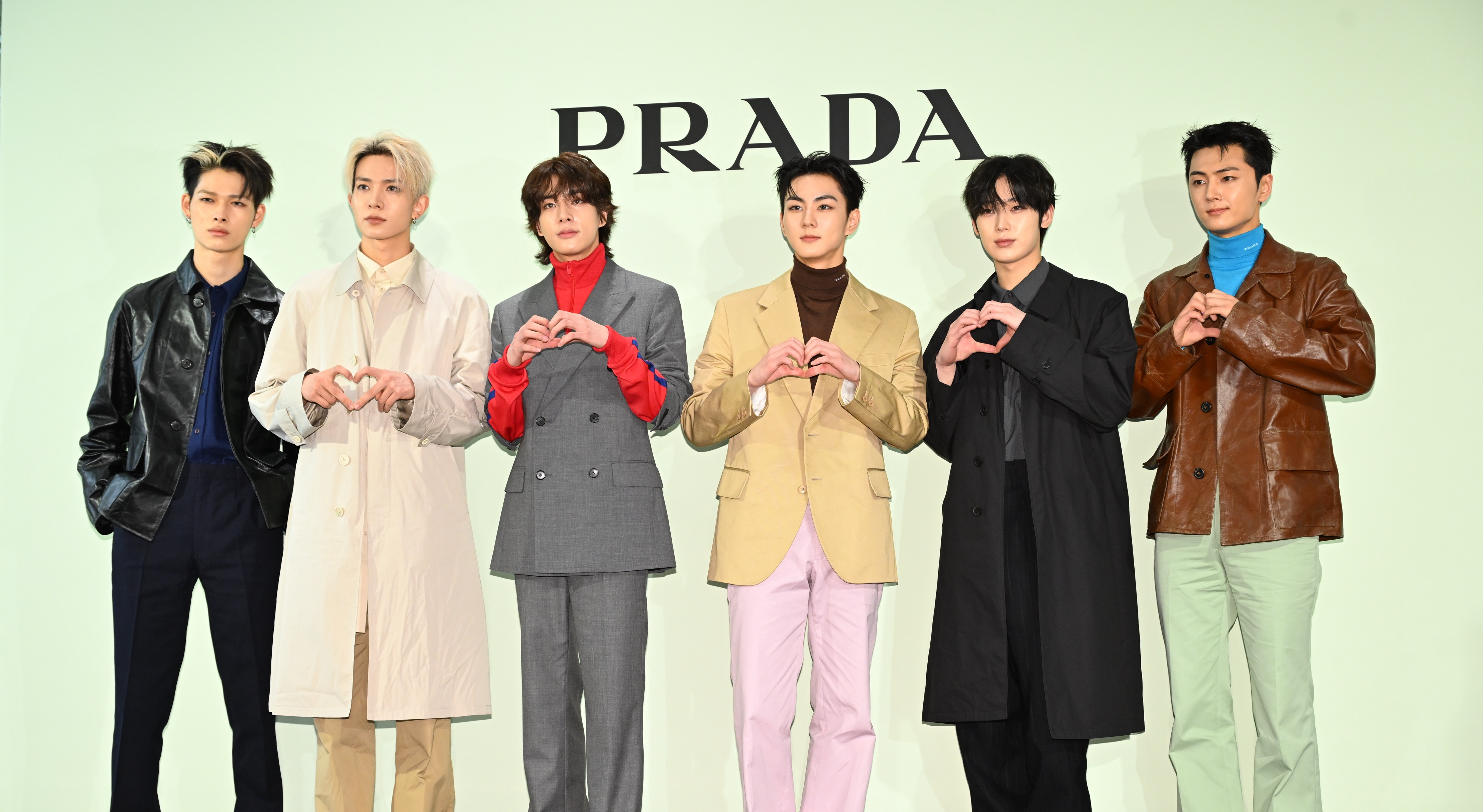 ENHYPEN稱讚PRADA的高品質與藝術視野,看到現場海量粉絲,也靦腆比心寵粉。(圖/記者胡舜翔攝)