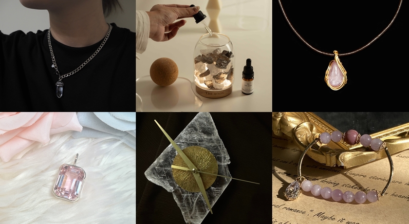 水晶的選擇繁多,大多數人喜歡將水晶幻化成配件佩戴於身,而不同顏色的水晶也代表多面向的保護意義。粉紫色調的紫鋰輝石近年成為焦點。亞洲跨境設計購物平台Pinkoi上的鉍元素SBI,其紫鋰輝流線纏繞墜,以金屬線條包覆礦石,讓溫柔色澤與俐落輪廓形成對比;Atlantis Crystal City推出的薔薇輝石、紫鋰輝水晶手鍊,透過粉色礦石堆疊展現細膩光感;charissagemstone粉紅色鋰紫玉純銀鍍鉑吊墜則以切割面強化晶體折射效果,適合日常簡約穿搭。偏好中性風格者,可選擇MODOMODO白水晶古巴項鍊,以鍊條結構平衡礦石清透質地;而Crystal LaVie白水晶拉長石月亮石手鍊,則透過多種透明礦石交錯排列,在手腕間形成柔和光帶。