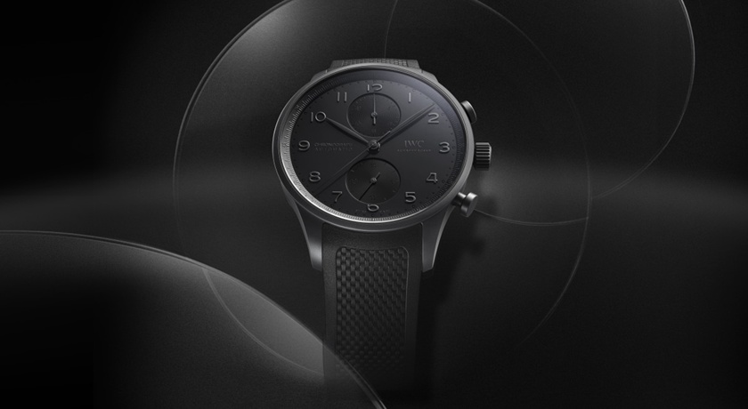 IWC推出全新葡萄牙系列瓷化鈦金屬計時腕錶,展現黑色美學。(IWC提供,以下同)